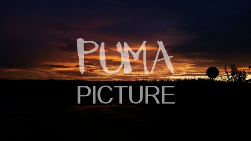 A dark sunset dusky scenery with an orange-brownish cluster of clouds in the sky, grass and a board silhouette on the right, with the glow of a setting sun in the background shining clouds.